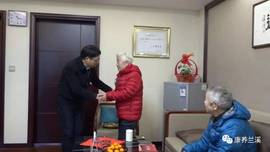 1月19日ri上shang午wu,蘭lan溪xi市shi委wei書shu記ji陳chen峰feng齊qi一yi行xing來lai到dao蘭lan溪xi百bai城cheng康kang養yang中zhong心xin,親qin切qie慰wei問wen了le入ru住zhu在zai百bai城cheng康kang養yang中zhong心xin的de四si戶hu長chang者zhe。陳chen書shu記ji為wei每mei位wei長chang者zhe送song上shang慰wei問wen禮li包bao和he新xin年nian掛gua曆li,並bing帶dai去qu濃nong濃nong的de新xin年nian祝zhu福fu。蘭lan溪xi市shi委wei常chang委wei、市政府黨組成員金建榮,蘭溪市委常委、組織部長郭亮,百城控股董事長張建紅等陪同慰問。